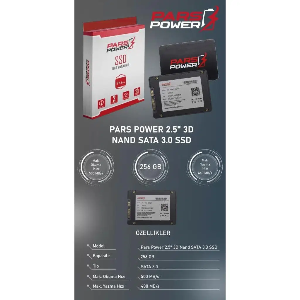PARS POWER 3D Nand (500/480) SATA 3.0 SSD PARS POWER 2.5" PP-7 PRO PARS 256Gb Ssd Harddisk